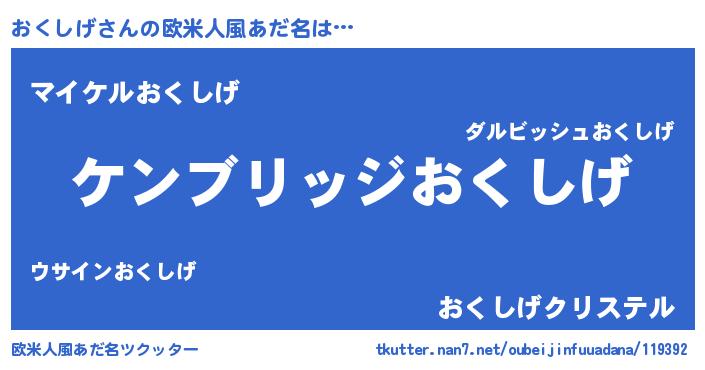 | 女子向けラノベタイトル風あだ名 | 『闇のおくしげ』『おくしげ伯爵の花嫁』 |