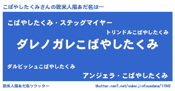| 男性向けラノベタイトル風あだ名 | 『この素晴らしい世界にこばやしたくみを!』 |