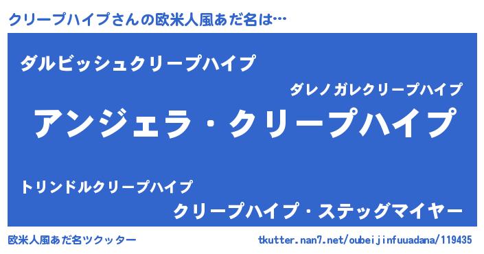 | 男性向けラノベタイトル風あだ名 | 『クリープハイプに滅ぼされるだけの簡単なお仕事です』 |