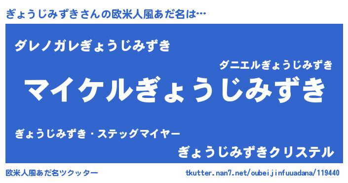 | 男性向けラノベタイトル風あだ名 | 『ギョウジミズキアートオンライン』 |