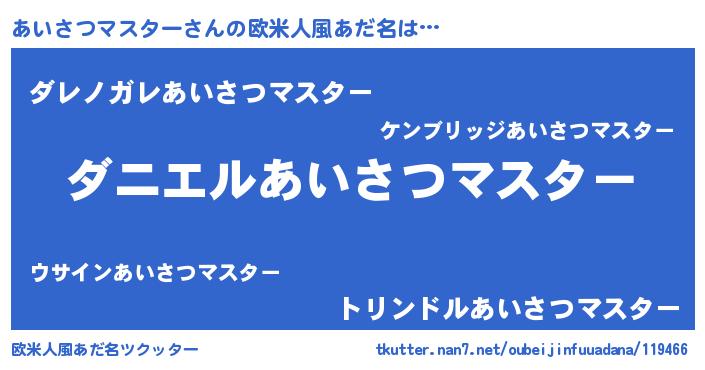 | ヒーロー風カッコイイあだ名 | 『慈愛の使者あいさつマスター』 |
