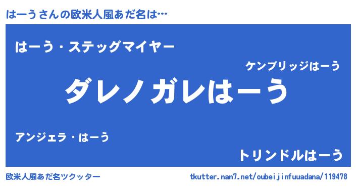 | 意味不明あだ名 | 『住所不定無職はーう(93歳)』『自称はーう』 |