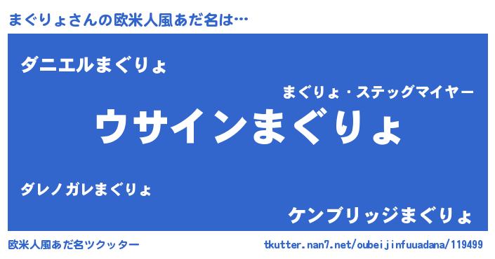 | 男性向けラノベタイトル風あだ名 | 『まぐりょの嫁は女の子じゃないと思った?』 |