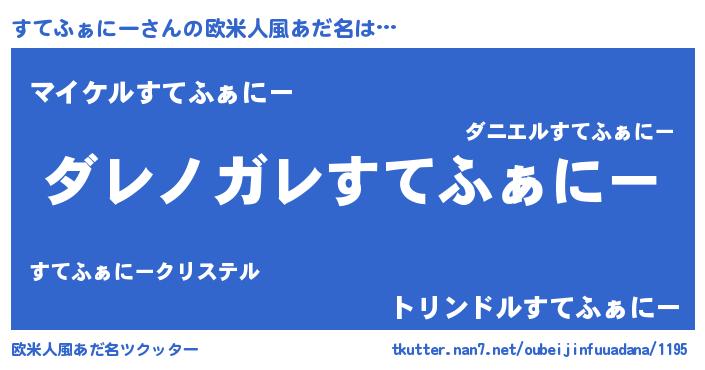 | 意味不明あだ名 | 『住所不定無職すてふぁにー(62歳)』 |
