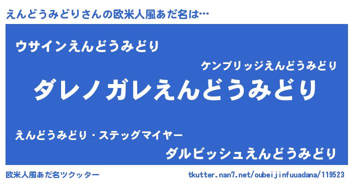 | 意味不明あだ名 | 『住所不定無職えんどうみどり(1歳)』 |