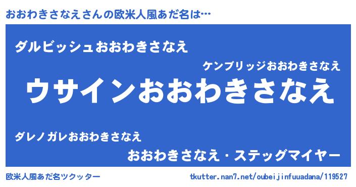 | 男性向けラノベタイトル風あだ名 | 『おおわきさなえの嫁は女の子じゃないと思った?』 |