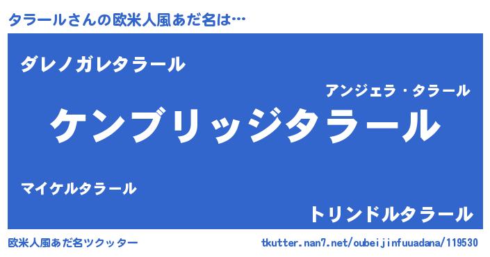 | 女子向けラノベタイトル風あだ名 | 『タラールなんてお断りですっ。』 |