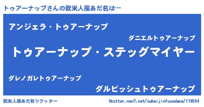 | ヘコむあだ名 | 『トゥアーナップ(震え声)』『トゥっふぃ~』 |