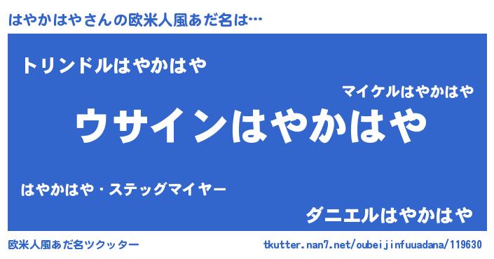 | 男性向けラノベタイトル風あだ名 | 『はやかはやの嫁は女の子じゃないと思った?』 |