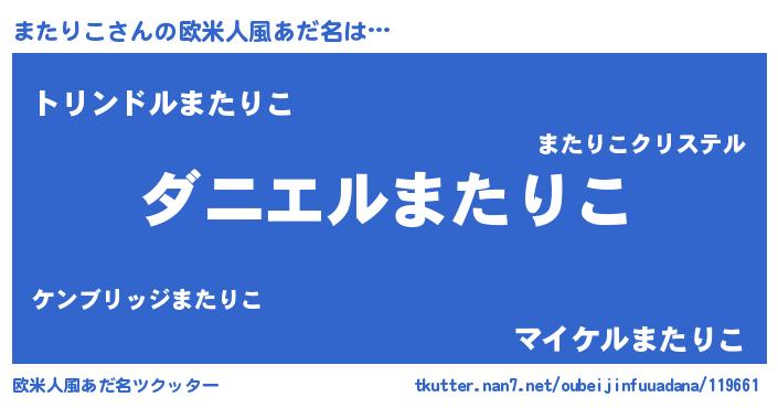 | 女子向けラノベタイトル風あだ名 | 『またりこ恋絵巻』『またりこ伯爵の花嫁』 |