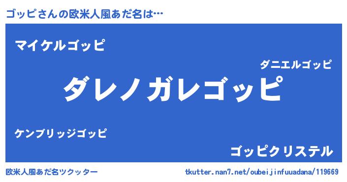 | 男性向けラノベタイトル風あだ名 | 『魔弾の王とゴッピ』『ゴッピの憂鬱』 |