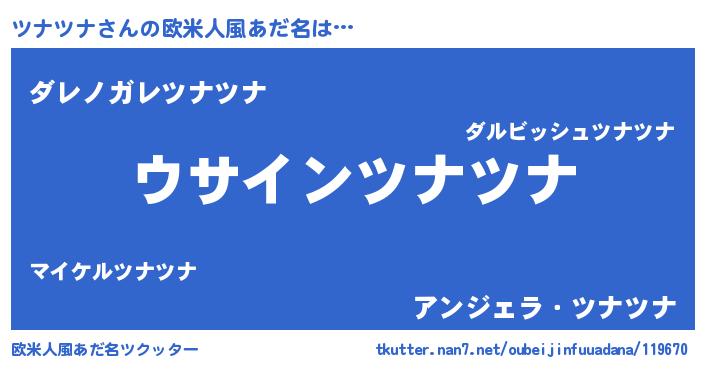 | 男性向けラノベタイトル風あだ名 | 『ツナツナの嫁は女の子じゃないと思った?』 |