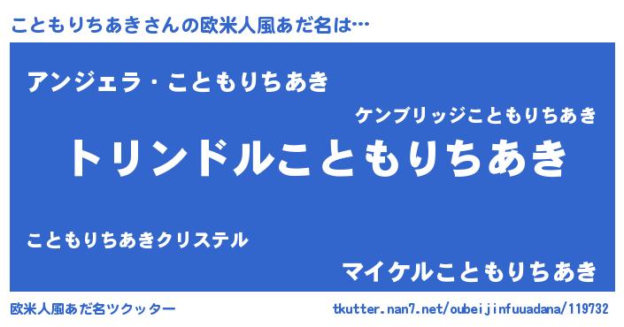| 女子向けラノベタイトル風あだ名 | 『こともりちあきの玉の輿計画!』 |