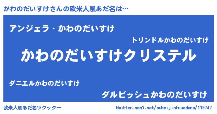 | 女子向けラノベタイトル風あだ名 | 『かわのだいすけの婚約者』 |