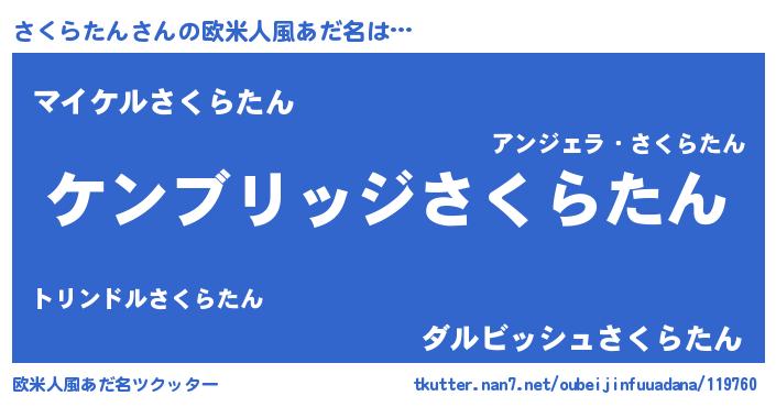 | 女子向けラノベタイトル風あだ名 | 『さくらたんなんてお断りですっ。』 |