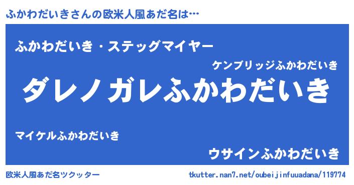 | 男性向けラノベタイトル風あだ名 | 『この素晴らしい世界にふかわだいきを!』 |