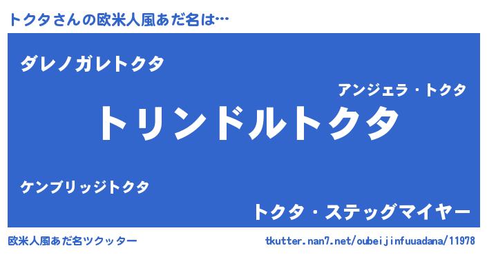 | 男性向けラノベタイトル風あだ名 | 『転生したらトクタだった件』 |