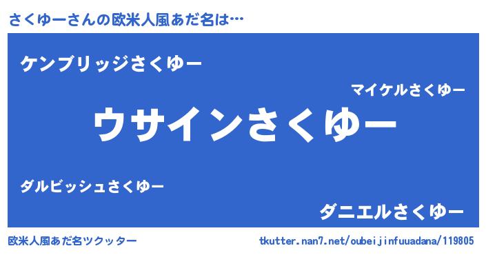 | 男性向けラノベタイトル風あだ名 | 『ダンジョンにさくゆーを求めるのは間違っているだろうか』 |