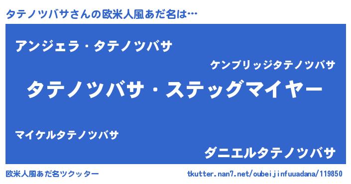 | 男性向けラノベタイトル風あだ名 | 『うちのタテノツバサが世界を掌握している!』 |