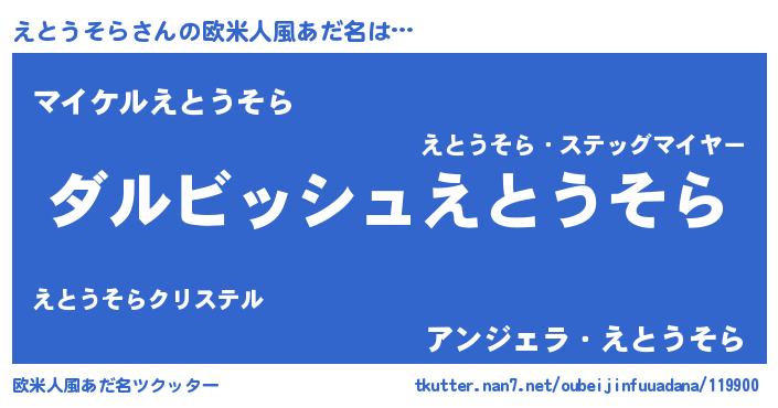 | ヘコむあだ名 | 『えとうそら(笑)』『えとにゅー』 |