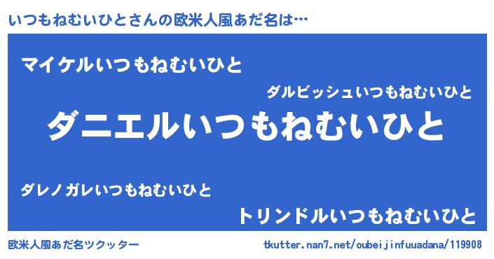 | 男性向けラノベタイトル風あだ名 | 『おまえをオタクにしてやるから、俺をいつもねむいひとにしてくれ! 』 |