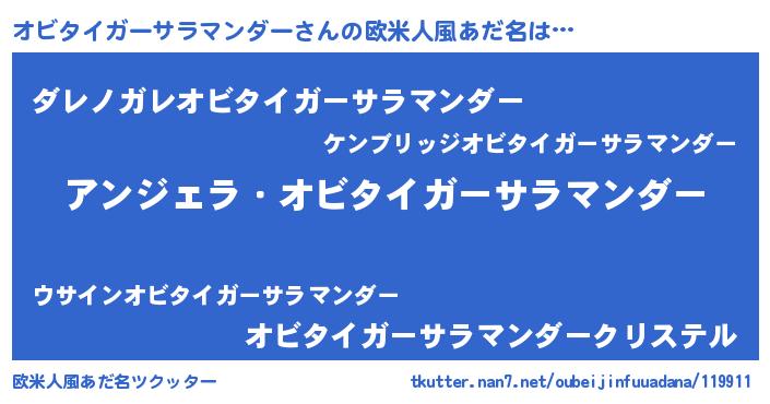 | 男性向けラノベタイトル風あだ名 | 『オビタイガーサラマンダーに滅ぼされるだけの簡単なお仕事です』 |