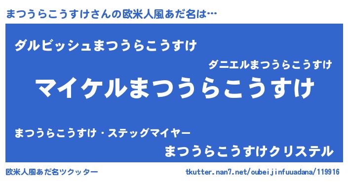 | 女子向けラノベタイトル風あだ名 | 『誰かこのまつうらこうすけを説明してください! ~契約から始まるウェディング~』 |