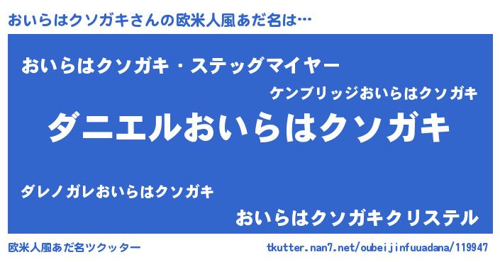 | 男性向けラノベタイトル風あだ名 | 『ノーゲーム・ノーオイラハクソガキ』 |