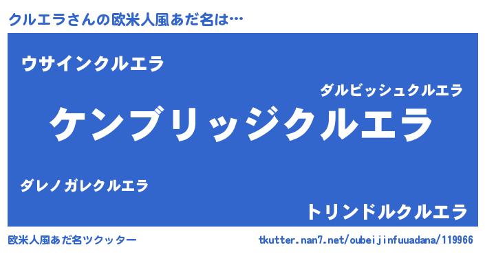 | 女子向けラノベタイトル風あだ名 | 『クルエラストレイドッグス』 |