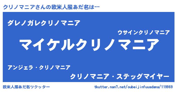 | 男性向けラノベタイトル風あだ名 | 『クリノマニアアートオンライン』 |