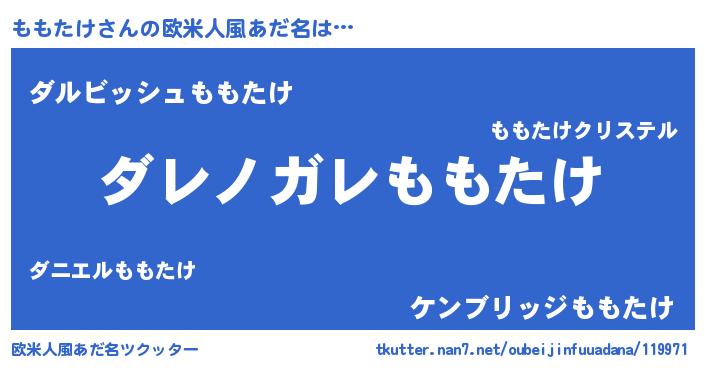| 男性向けラノベタイトル風あだ名 | 『この素晴らしい世界にももたけを!』 |