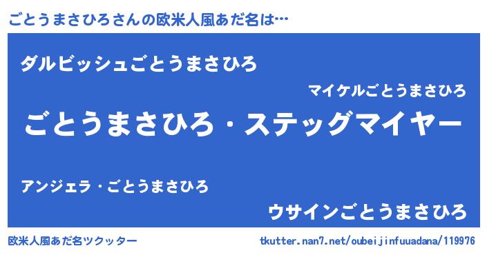 | 男性向けラノベタイトル風あだ名 | 『冴えないごとうまさひろの育てかた』 |