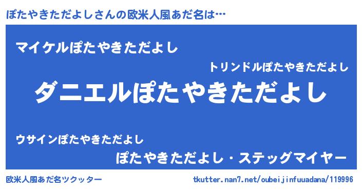 | ヒーロー風カッコイイあだ名 | 『慈愛の使者ぽたやきただよし』 |