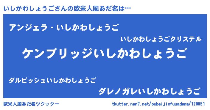 | 意味不明あだ名 | 『自称いしかわしょうご』 |
