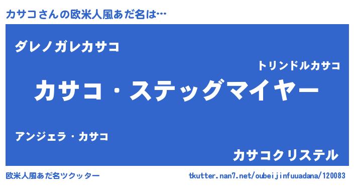 | 男性向けラノベタイトル風あだ名 | 『うちのカサコが世界を掌握している!』 |