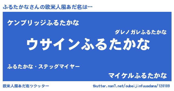 | 男性向けラノベタイトル風あだ名 | 『ふるたかなの嫁は女の子じゃないと思った?』 |