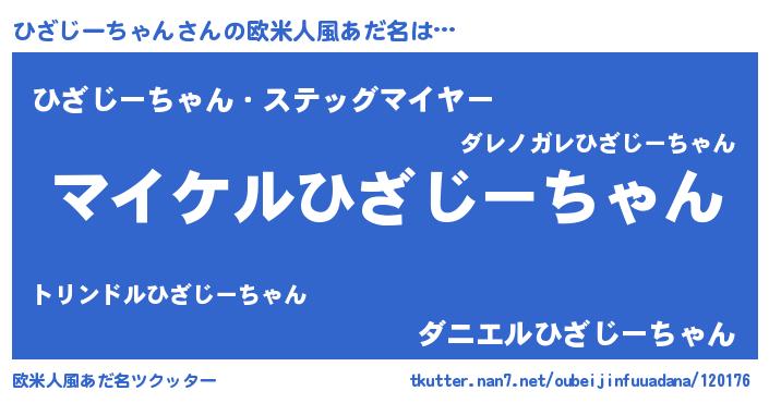 | 男性向けラノベタイトル風あだ名 | 『ひざじーちゃんの憂鬱』 |