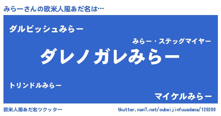 | 意味不明あだ名 | 『住所不定無職みらー(7歳)』 |