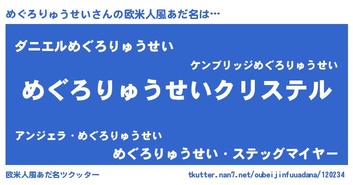 | 男性向けラノベタイトル風あだ名 | 『やはりめぐろりゅうせいの青春ラブコメはまちがっている 』 |