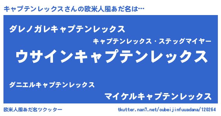 | 胡散臭い通販商品みたいなあだ名 | 『信頼と実績のサプリメント…その名も「キャプテンレックス」』 |
