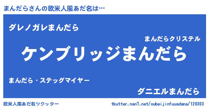 | 女子向けラノベタイトル風あだ名 | 『闇のまんだら』『まんだら伯爵の花嫁』 |