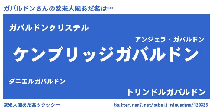 | 男性向けラノベタイトル風あだ名 | 『Re:ガバルドンから始める異世界生活』 |