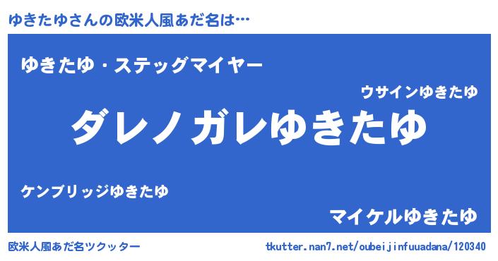 | 女子向けラノベタイトル風あだ名 | 『乙女ゲームの破滅フラグしかない悪役ゆきたゆに転生してしまった…』 |