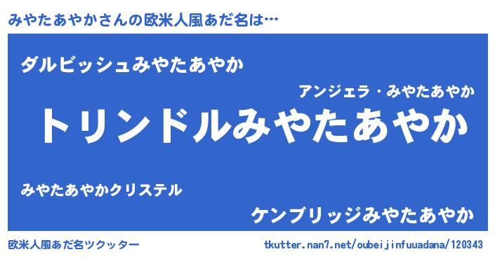 | ヘコむあだ名 | 『みやたあやか(笑)』『酢こんぶ』 |