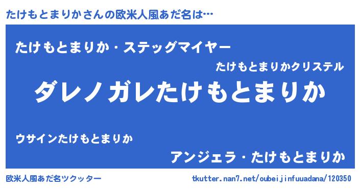 | 男性向けラノベタイトル風あだ名 | 『魔弾の王とたけもとまりか』 |