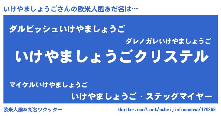 | 男性向けラノベタイトル風あだ名 | 『やはりいけやましょうごの青春ラブコメはまちがっている 』 |