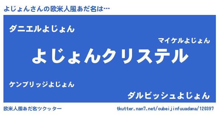 | 意味不明あだ名 | 『よじょんフォーエバー』『自称よじょん』 |