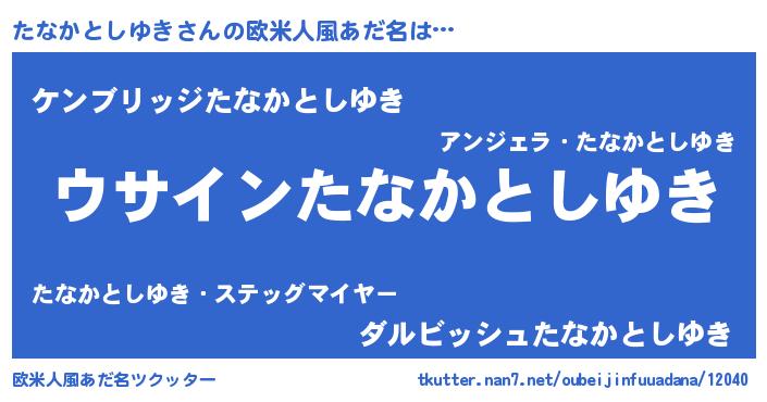 | ポケモン風あだ名 | 『ヒタナカトシユキ』『タナセウス』 |