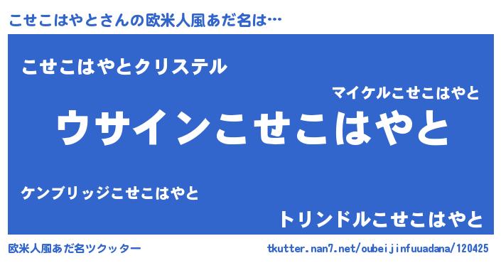 | 意味不明あだ名 | 『とにかく怪しいこせこはやと』 |