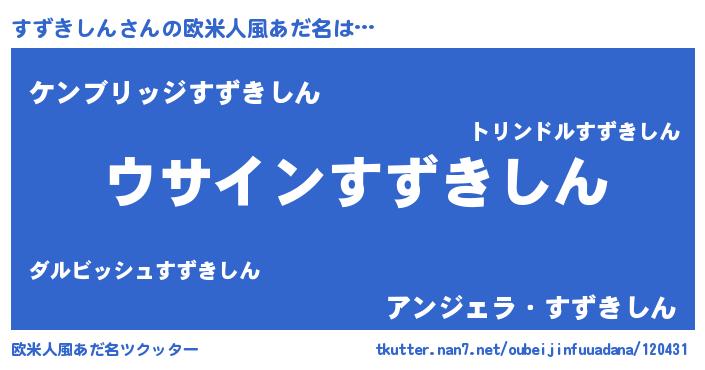 | 男性向けラノベタイトル風あだ名 | 『すずきしんの嫁は女の子じゃないと思った?』 |